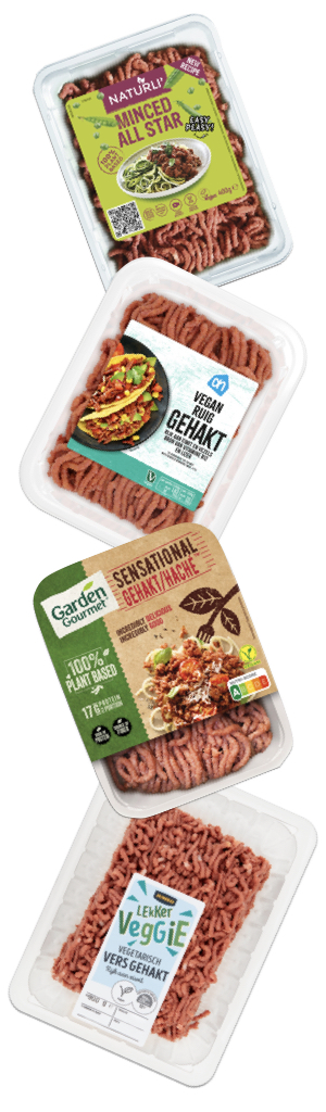 Rauw vegetarisch gehakt lijkt akelig veel op echt gehakt. Je kan het kneden en er ballen of worst van draaien,