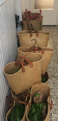 Sinds een paar jaar ben ik op woensdagmiddag 'afhaalpunt' voor Tuinderij de Guit. Mijn gang staat dan vol met tassen, die tussen 16u en 19u opgehaald worden. Je neemt een volle tas mee en levert de volgende week je lege tas weer in.