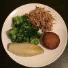 Wij aten het met witlof, broccoli en een gehacktbal van de vegetarische slager.